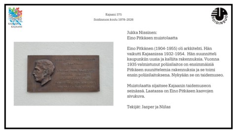 seinässä. Laatassa on Eino Pitkäsen kasvojen