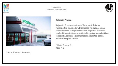 rakennettiin 27.10.1994. Prismassa voi syödä, ostaa