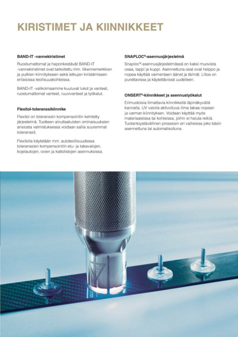 Flexitol-toleranssikiinnike kannalla. UV valolla aktivoituva liima takaa nopean