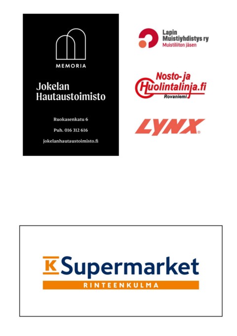 Ruokasenkatu 6 Puh. 016 312 616 jokelanhautaustoimisto.fi KAUPAN LOGO Yksittäiset logot JPG- ja PDF-muodoissa saat lataamalla ZIP-pakatun tiedoston (taiton osat) Ensisijainen: RINTEENKULMA Versio 2, jos ensisijainen logo ei erotu taustasta