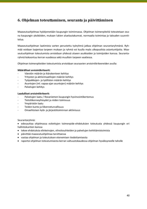 6. Ohjelman toteuttaminen, seuranta ja päivittäminen