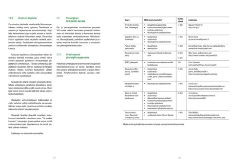 7.6.3. Uimahalli Vesihiisi 7.7. Yhteistyö eri Seura Mitä tarjota kouluille? Kohde‐ Lisätietoja
