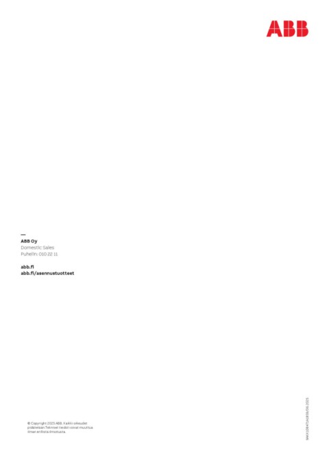 — 9AKK108471A1859/06.2025 ABB Oy Domestic Sales Puhelin: 010 22 11 abb.fi abb.fi/asennustuotteet © Copyright 2025 ABB. Kaikki oikeudet pidätetään.Tekniset tiedot voivat muuttua ilman erillistä ilmoitusta.