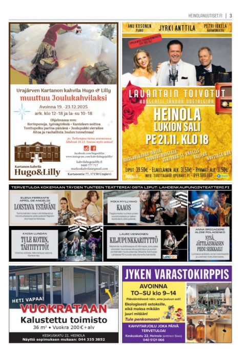 Avoinna 19.–23.12.2025 PE 21.11. KLO 18