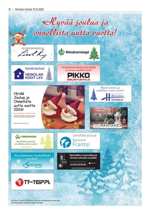 Heinolan Uutiset lahjoittaa joulutervehdyksistä kertyneet