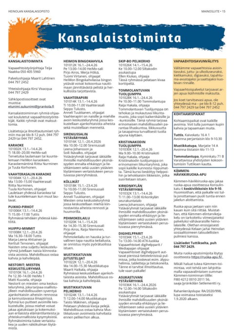HEINOLAN KANSALAISOPISTO MAINOSLIITE • 15