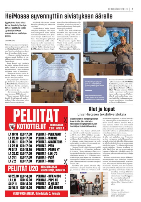 SU 26.10 KLO 14.00 PELIITAT - HIFK SIBBO