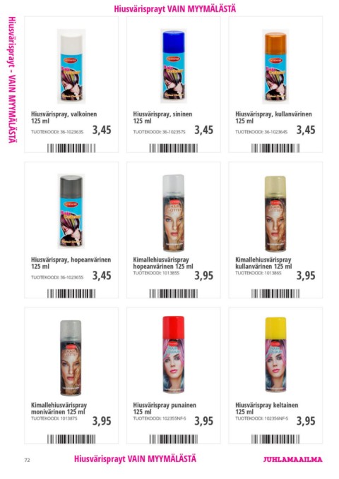 72 Hiusvärisprayt VAIN MYYMÄLÄSTÄ JUHLAMAAILMA