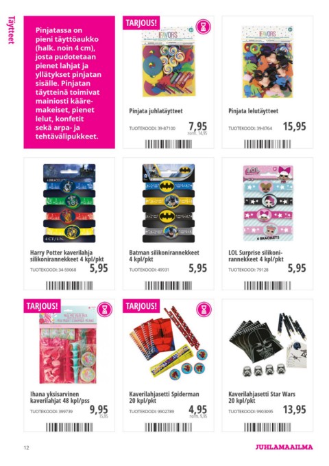 (halk. noin 4 cm), Pinjata juhlatäytteet Pinjata lelutäytteet