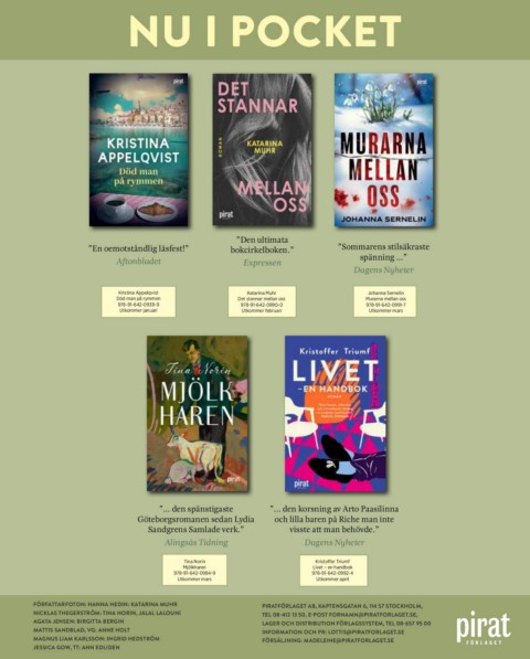 NICKLAS THEGERSTRÖM: TINA NORIN, JALAL LALOUNI TEL 08-412 13 50, E-POST FORNAMN@PIRATFORLAGET.SE,