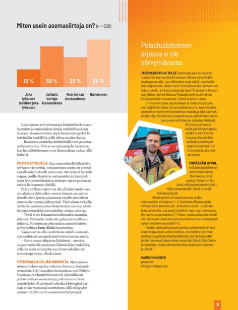 mukaan. Asemasiirtoihin myös kannattaisi pyrkiä lä- On kuormittavaa, kun koskaan ei tiedä, missä tule-
