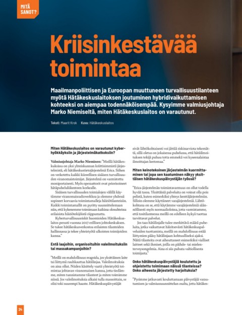 Valmiusjohtaja Marko Nieminen: ”Meillä hätäkes- ilmoittajan kertomaa.”