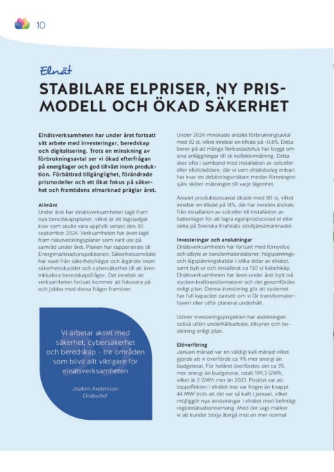 Elnätsverksamheten har under året fortsatt Under 2024 minskade antalet förbrukningsavtal