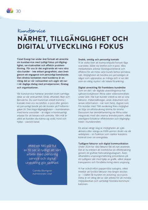 Ystad Energi har under året fortsatt att utveckla Snabb, smidig och personlig kontakt