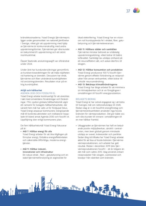 De fem hållbarhetsmål Ystad Energi fokuserar • Utbyggnaden av fjärrvärmen har haft en betyd-