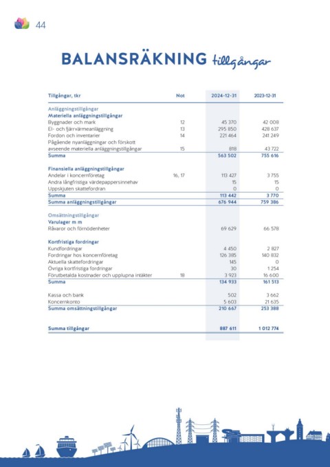 Tillgångar, tkr Not 2024-12-31 2023-12-31