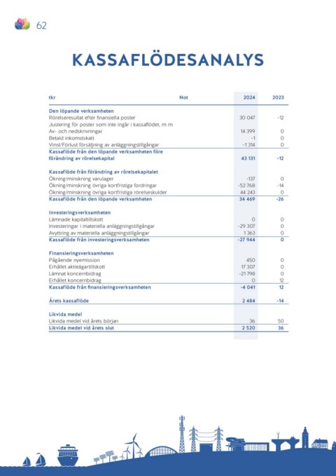 Kassaflöde från den löpande verksamheten 34 469 -26