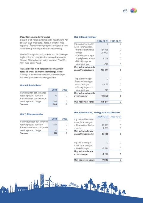 Uppgifter om moderföretaget Not 8) Elanläggningar