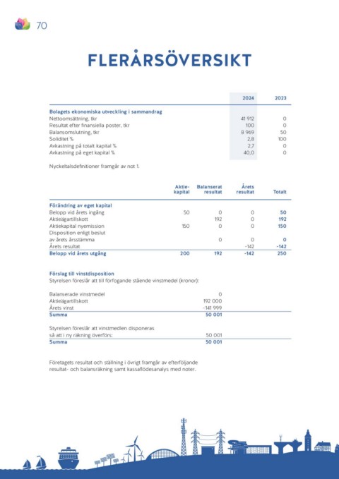 Bolagets ekonomiska utveckling i sammandrag 41 912 0