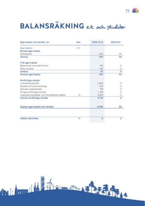 Eget kapital och skulder, tkr Not 2024-12-31 2023-12-31