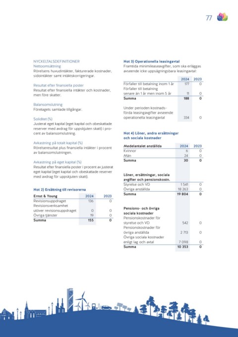 NYCKELTALSDEFINITIONER Not 3) Operationella leasingavtal