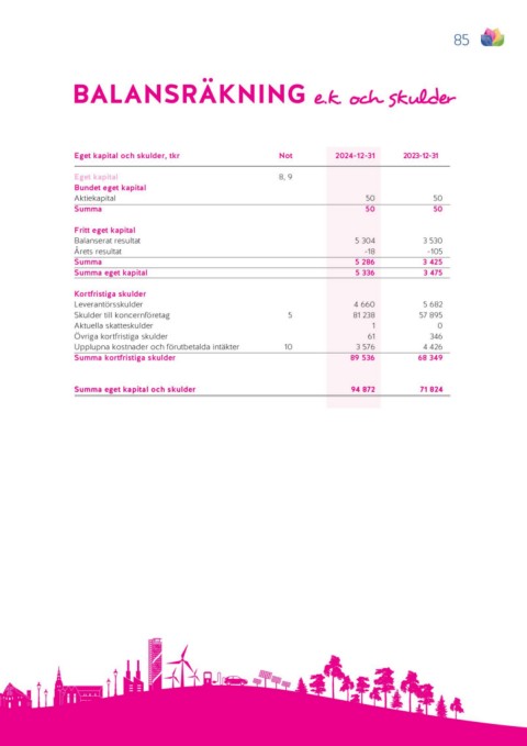 Eget kapital och skulder, tkr Not 2024-12-31 2023-12-31