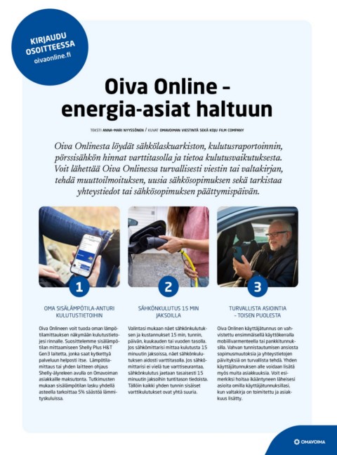 Oiva Onlinesta löydät sähkölaskuarkiston, kulutusraportoinnin,