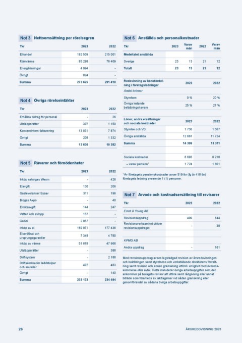 Not 3 Nettoomsättning per rörelsegren Not 6 Anställda och personalkostnader
