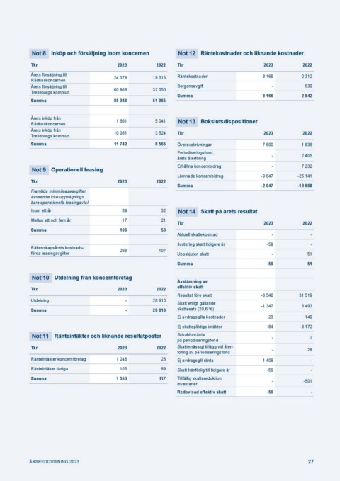 Not 9 Operationell leasing 2023 2022 Erhållna koncernbidrag -13 668