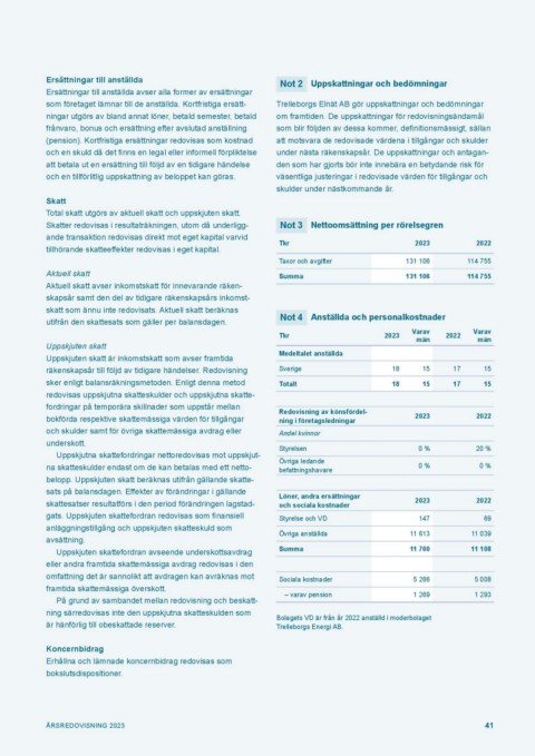 som företaget lämnar till de anställda. Kortfristiga ersätt- Trelleborgs Elnät AB gör uppskattningar och bedömningar