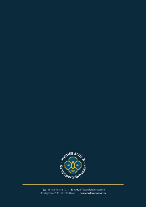 TEL: +46 (0)8-714 88 70 ̵ E-MAIL: info@budokampsport.se Ölandsgatan 42, 116 63 Stockholm ̵ www.budokampsport.se 86 SVENSKA BUDO & KAMPSPORTSFÖRBUNDETS ANLÄGGNINGSGUIDE
