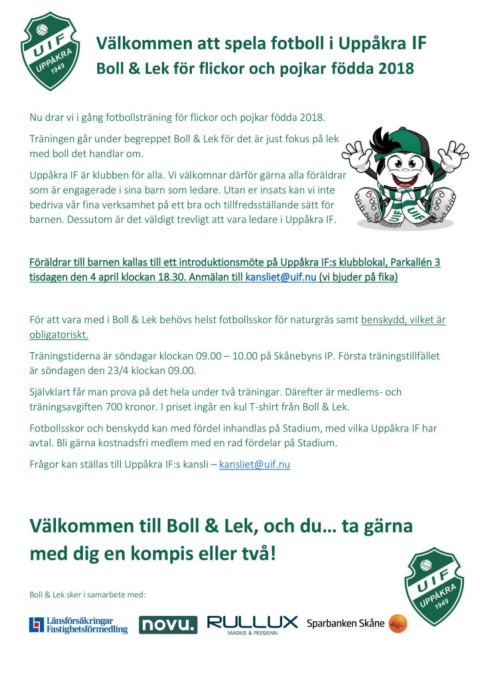 Frågor kan ställas till Uppåkra IF:s kansli – kansliet@uif.nu