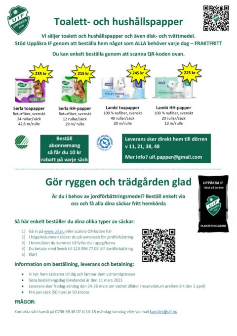 Stöd Uppåkra IF genom att beställa hem något som ALLA behöver varje dag – FRAKTFRITT