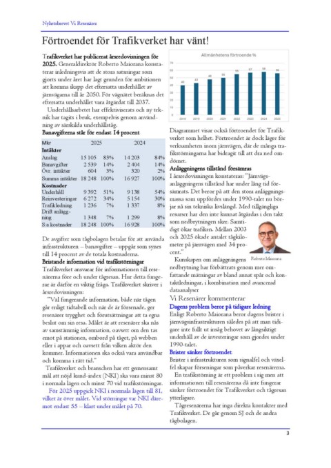 ning av särskilda underhållståg. Diagrammet visar också förtroendet för Trafik-