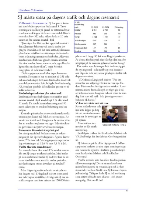 Vi Resenärer kommenterar. SJ har precis kom- SJ AB Q3 2025 Q3 2024 Förändring