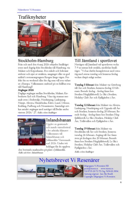 till Hamburg! till Åre och Storlien, hemresa fredag 13 feb-
