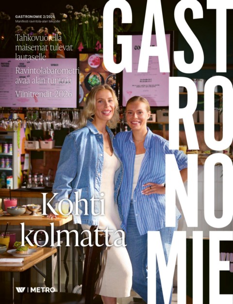 GASTRONOMIE 2/2025 Manifesti ravintola-alan tekijöille Tahkovuorella maisemat tulevat lautaselle Ravintolabarometri avaa alan tuntoja Viinitrendit 2026 Kohti kolmatta