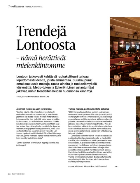 20 GASTRONOMIE Britanniassa. Kilpailussa erottuakseen ravintolat