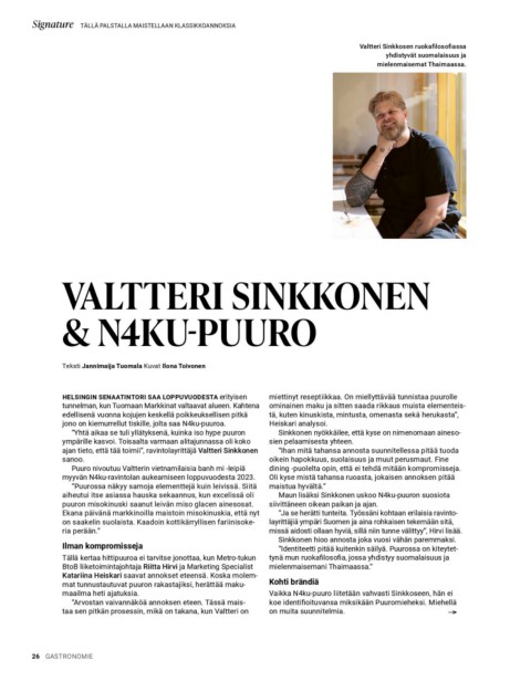 ”Arvostan vaivannäköä annoksen eteen. Tässä mais- Vaikka N4ku-puuro liitetään vahvasti Sinkkoseen, hän ei