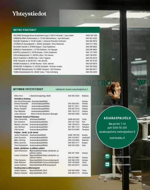 Kari Granfors Avainasiakaspäällikkö 040 738 8473 Tampere asiakaspalvelu.metro@wihuri.fi