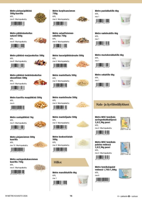 W METRO KUVASTO 2026 16 T = pakaste U = uutuus