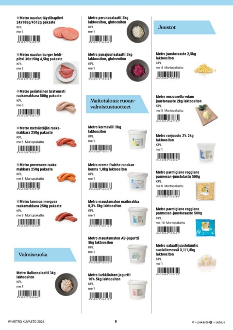 W METRO KUVASTO 2026 9 T = pakaste U = uutuus