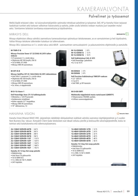 Meiltä löydät erityisesti video- tai kulunvalvontakäyttöön optimoidut tehokkaat palvelimet ja työasemat. Dell, HP ja Hanwha Vision tarjoavat