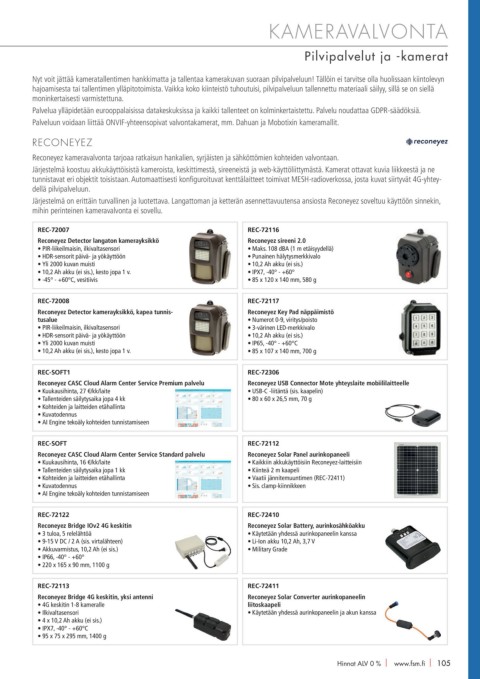 • Kuukausihinta, 16 €/kk/laite • Kaikkiin akkukäyttöisiin Reconeyez-laitteisiin