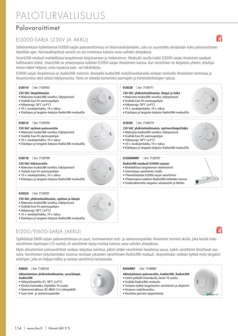 • 10 v. varakäyntiakku, 10 v. takuu • Yhteenliitettävä EI3000-sarjan varoittimiin