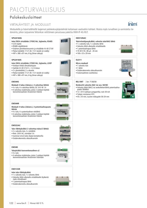 Moduuli 4 tuloa (2xkonv.), 4 valvottua lähtöä Relekortti valvottu NAC tai avo. NO/NC