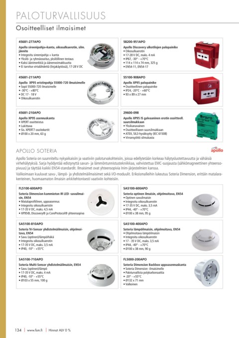 Valikoimaan kuuluvat savu-, lämpö- ja yhdistelmäilmaisimet sekä I/O-moduulit. Erikoismalleihin lukeutuu Soteria Dimension, erittäin matalara-