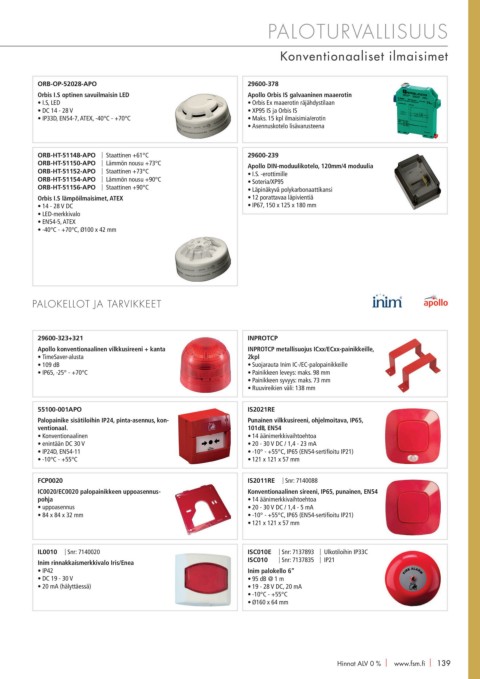 • IP24D, EN54-11 • -10° - +55°C, IP65 (EN54-sertifioitu IP21)