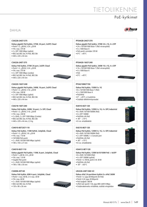 Dahua PoE-kytkin, 240W, 16-port, 2 x SFP, Cloud Dahua PoE-kytkin, 120W 6 x 1G, 4 x SFP, Industrial
