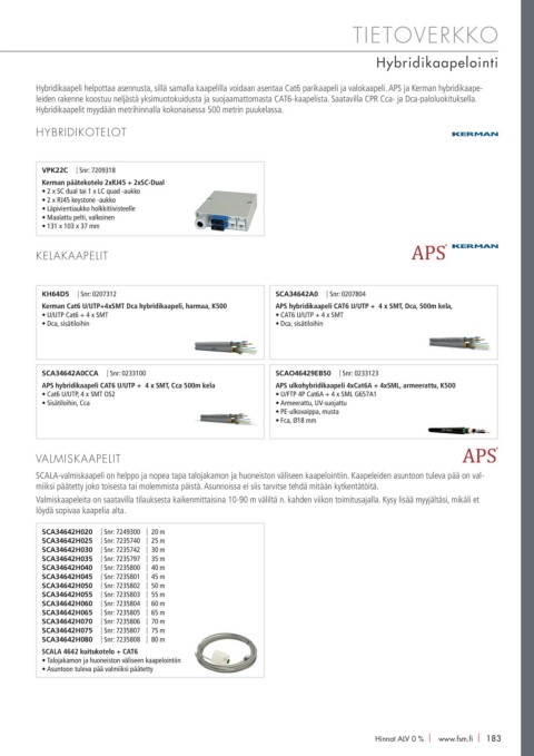 Hybridikaapeli helpottaa asennusta, sillä samalla kaapelilla voidaan asentaa Cat6 parikaapeli ja valokaapeli. APS ja Kerman hybridikaape-